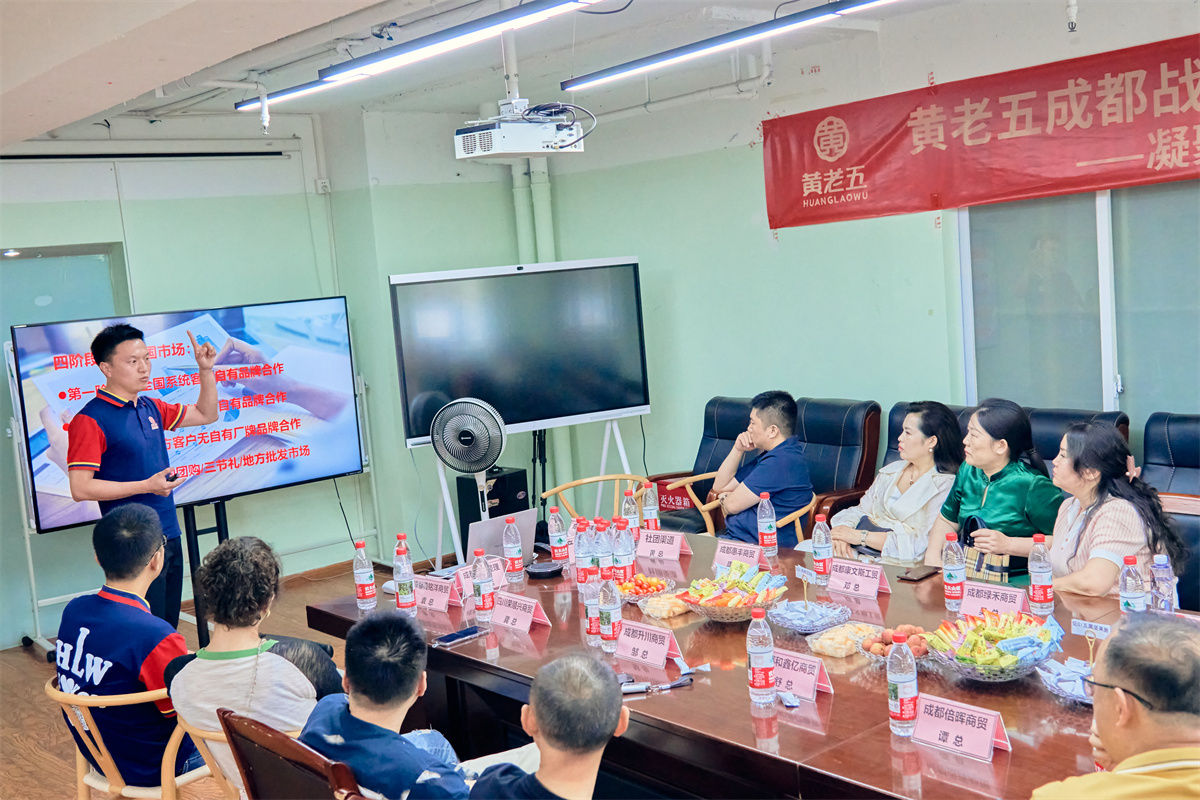 成都战区应松廷经理以“执行力”为关键词,展示2024年八大专项战果:200+终端品牌专区、560万订货会回款、盒马百万增长。2025年公司将通过“四阶段全国引爆”(自有品牌→连锁系统→厂牌覆盖→批发礼盒)实现全域渗透,更将私域渠道列为战略重点。黄总透露:“黄老五私域已试水四家新模型,未来将打造自主可控的增量通道。”
